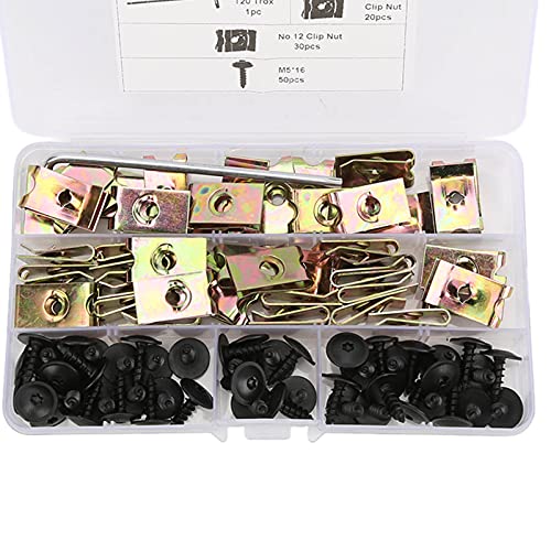 101 pz Auto U-Clip Dado Assortimento Kit, Universale Acciaio al Manganese M5x16mm Vite Autofilettante Fermo di Fissaggio per Parafango Auto
