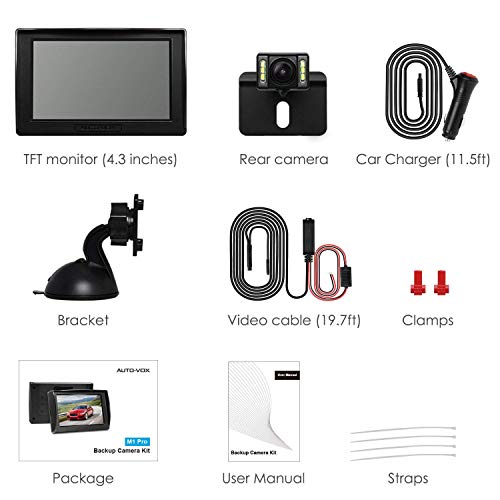 AUTO-VOX M1PRO Telecamera Retromarcia con Monitor LCD da 4,3 '', Telecamera Posteriore Impermeabile IP68 con 6 LED, Visione Notturna, Grandangolo 165 °, Retrocamera Cablata Aggiornata