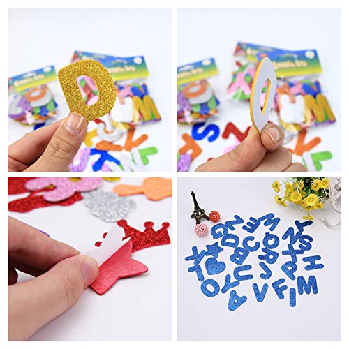 ❀Adesivi glitterati❀ 252 pezzi di adesivi glitterati in EVA, con una dimensione da 3,5 a 4,5 cm, inclusi lettere, numeri, caratteri, stelle e cuori.