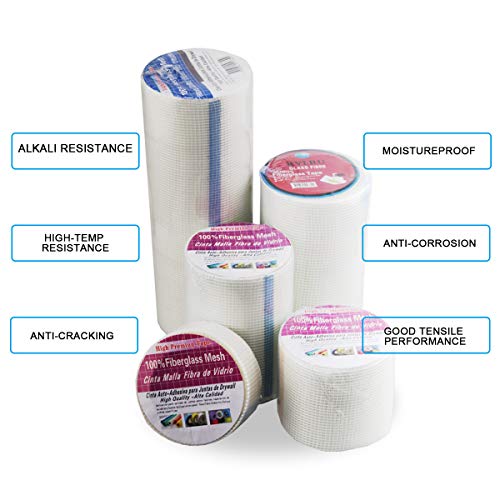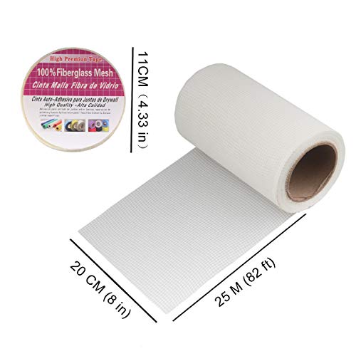 Autoadesivo ad Alta Resistenza del Tessuto del Nastro Della Maglia del Panno Della Vetroresina, Nastro Della Cucitura del Bordo di UWECAN per la Riparazione del Muro a Secco-20 cm X 25 m(8″X 82′)