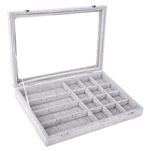 AUTOARK Portagioie Scatola in Velluto,Contenitore per Gioielli con 24 Scomparti,Coperchio in Vetro,Grigio,AJU-022