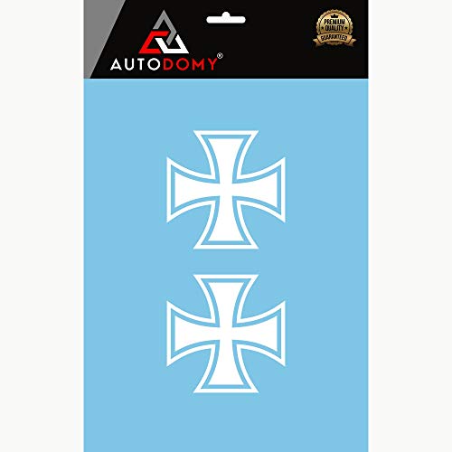 Autodomy Confezione Adesivi Croce di Ferro Croce di Malta 2 Pezzi per Auto o Moto (Bianco)
