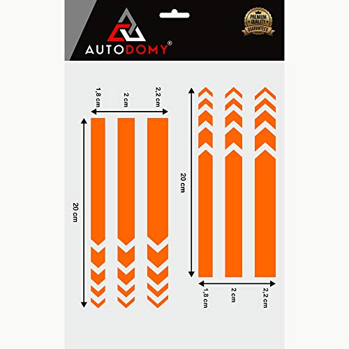 Autodomy Confezione Adesivi per Specchietti Retrovisori Car Stripes Strisce Design Freccia Confezione da 6 unità con Diverse larghezze per Auto (Arancione)