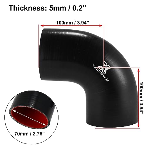 X AUTOHAUX 70mm 2.7" ID 90 gradi tubo in silicone per auto tubo accoppiatore nero rosso