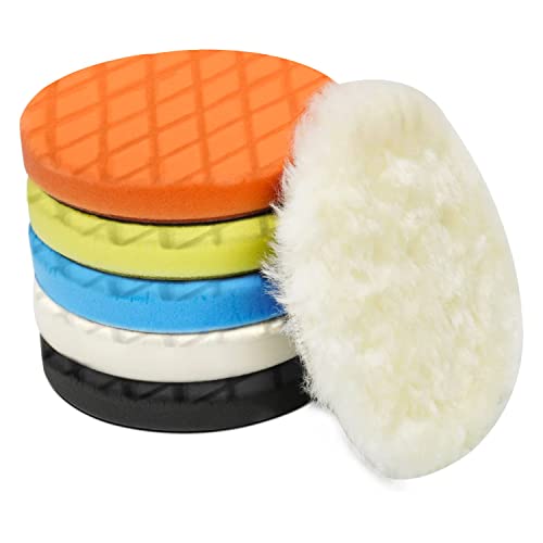 Autolock Set di 6 tamponi per lucidatura, 6.5 pollici, 165mm, per 6 pollici, spugna e tamponi di lana, per lucidatura, lucidatura e cera