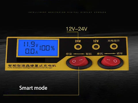 Automotive Car Battery Charger 350W 15A AUTO Plus Adjust LCD Battery Charger Terminals 12V-24V Car Jump Starter Portable