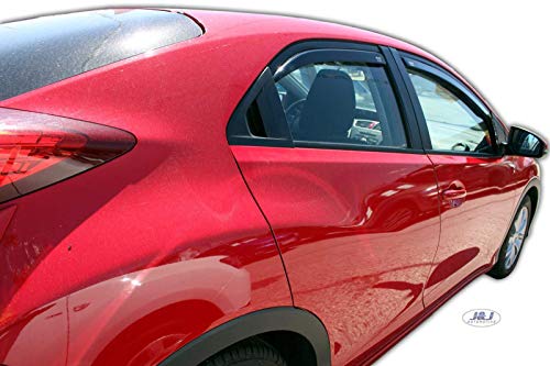 Deflettori D'Aria Antiturbo su misura per Honda Civic 5 Porte Berlina 2012-2016, Non si adatta per 4 porte berlina, Confezione da: Set di 4 Pezzi, Anteriore E Posteriore