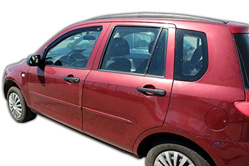 Deflettori D'Aria Antiturbo su misura per Mazda 2 5 Porte Berlina 2003-2007, Non si adatta per 4 porte berlina, Confezione da: Set di 2 Pezzi, Anteriore