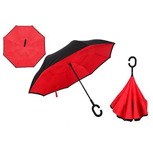 Autonorth Double Layer Reverse Outdoor Stick Umbrella Windproof Waterproof and Self Standing Inside Out Umbrella Best for Travelling and Car Using Color Red
