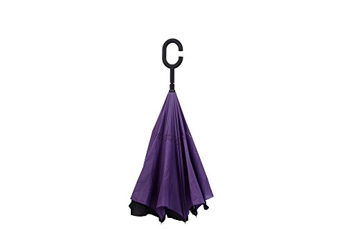 Autonorth Double Layer Reverse Outdoor Stick Umbrella Windproof Waterproof and Self Standing Inside Out Umbrella Best for Travelling and Car Using Color Purple