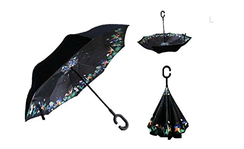 Autonorth Double Layer Reverse Outdoor Stick Umbrella Windproof Waterproof and Self Standing Inside Out Umbrella Best for Travelling and Car Using Color Special Flower