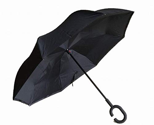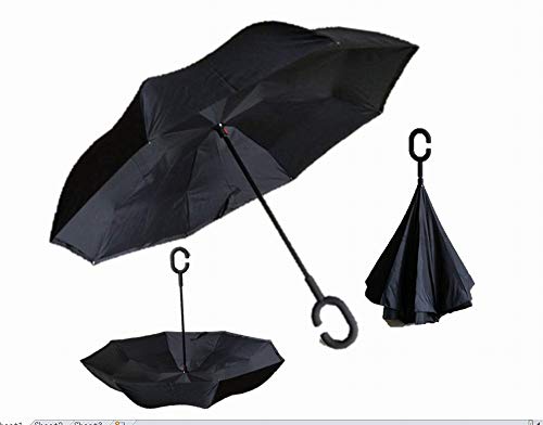 Autonorth Double Layer Reverse Outdoor Stick Umbrella Windproof Waterproof and Self Standing Inside Out Umbrella Best for Travelling and Car Using Color Full Black