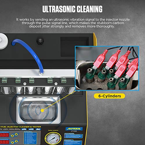 Autool CT200 Pulitore e Tester per iniettore di Carburante a Onde ultrasoniche 6 cilindri a Benzina Macchina per la Pulizia del Sistema di iniezione di Carburante per autoveicoli