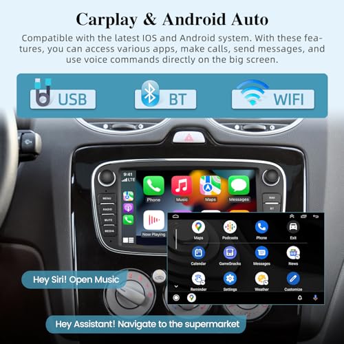 【Wired & Wireless Carplay & Android Auto】 Il touchscreen da 7 pollici Mondeo autoradio Apple Carplay e Android Auto, basta connettersi con il tuo smartphone che ti consentono di accedere alla navigazione della mappa, ai contatti telefonici, alle e-mail, alle notifiche, alla musica e altro ancora.