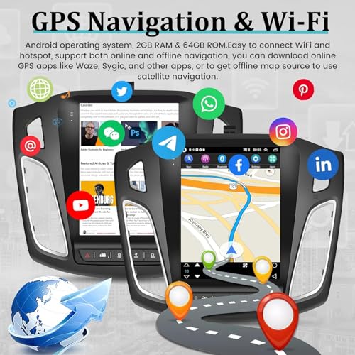 【Autoradio Android Ford Focus】Questa avanzata autoradio è progettata per adattarsi perfettamente a Ford Focus 2012 2013 2014 2015 2016 2017 2018, con un display touchscreen verticale che fornisce immagini ultra-chiare in HD 1080P con display dettagliato. Con l'ultimo sistema Android, 2 GB di RAM e 32 GB di ROM, puoi installare più app e godere di un'operazione più veloce.