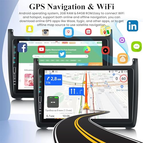 【Carplay&Android Auto wireless e cablato】Radio Polo compatibile con l'ultimo sistema IOS e Android, supporta connessioni wireless e cablate, con controllo vocale. È un modo più intelligente e sicuro per utilizzare il cellulare durante la guida. Puoi ottenere indicazioni stradali, effettuare chiamate, inviare e ricevere messaggi e goderti la tua musica preferita.