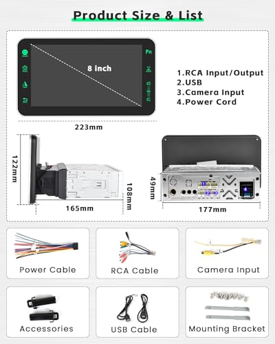 Autoradio 1 Din Bluetooth Carplay con Schermo Rimovibile Touchscreen HD da 8'' Radio 1 Din con Vivavoce Bluetooth Android Auto FM Mirror Link Controllo del Volante Supporta Telecamera Retromarcia