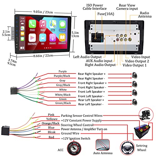Autoradio Bluetooth 1 Din Compatibile Apple CarPlay, 9 pollici Stereo Auto Touch Screen Supporta Bluetooth Vivavoce/AM/FM Radio/Mirror Link/USB/Telecamera Posteriore/Microfono
