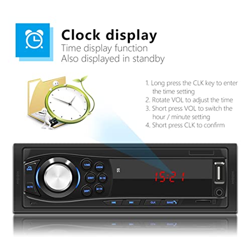 Questa autoradio da 1 din è adatta per molti veicoli, autoradio bluetooth con microfono per chiamate in vivavoce e trasmissione audio. Viene fornito con un orologio elettronico, che può essere visualizzato anche in standby, il che è più conveniente