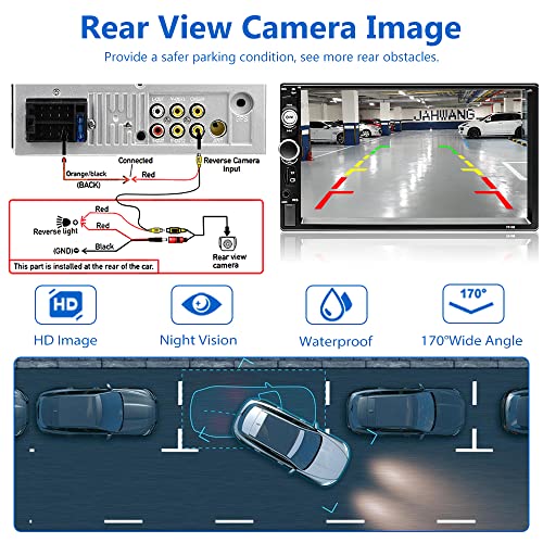 ▶ Stereo per auto con telecamera di retromarcia: Questa radio a 2 din è dotata di una telecamera posteriore per la visione notturna. Si illuminerà automaticamente al buio, 170 gradi ampio angolo di visione, non più punti ciechi. La radio touchscreen visualizza automaticamente le immagini di retromarcia quando si tira la retromarcia dell'auto.