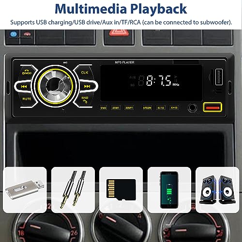 【FM Radio 】Ricevitore radio con 30 stazioni preimpostate. Questa autoradio supporta le schede MP3/WMA/WAV/TF. Frequenza radio: 87,5 MHz - 105 MHz, chiara e silenziosa per una migliore esperienza di ascolto. Radio FM per il traffico in tempo reale, i notiziari, le previsioni del tempo, ecc.