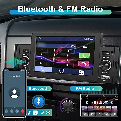 Autoradio 1 Din con Bluetooth Vivavoce IOS/Android Mirror Link 5 Pollici Touchscreen FM Radio USB/AUX/EQ con Microfono Telecomando Controllo del Volante + Telecamera Posteriore
