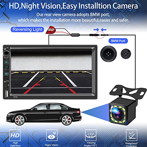 【Telecamera per retromarcia】 La nostra autoradio a doppio din dotata di una fotocamera impermeabile con telecamera di backup per visione not