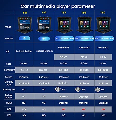 4. [Carplay e AI Voice control]: con la più recente API 29 di Android 11, corri più velocemente. Costruito in Wireless Carplay e Android Auto (TS3, TS5, TS6), non è più necessario acquistare un dongle Carplay. Controllo vocale AI (TS3, TS5, TS6), libera completamente le mani e garantisce la sicurezza di guida, sup