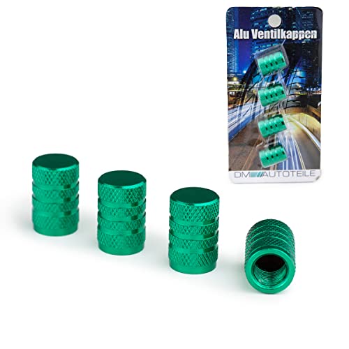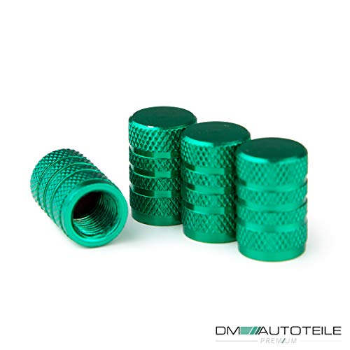 DM Autoteile Set di 4 tappi coprivalvole in alluminio per valvole pneumatici, universali, con guarnizione (verde)