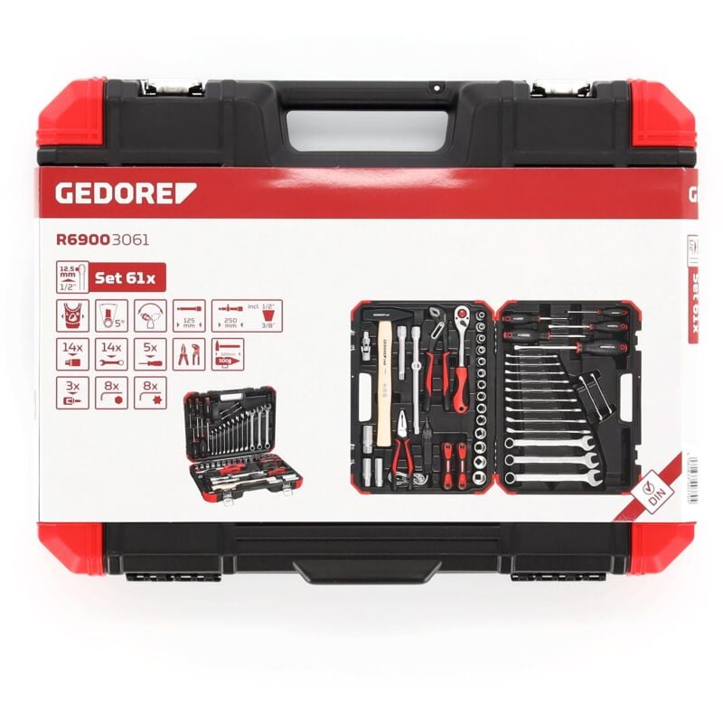 Quadrato di collegamento secondo DIN 3120 - A 12.5, ISO 1174, con dispositivo di bloccaggio a sfera, Azionamento interno quadrato secondo DIN 3120 - C 12.5, ISO 1174, con scanalatura di fissaggio a sfera, Cricchetto 2K reversibile 1/2, corsa a destra/sinistra reversibile tramite levetta, scatto a pulsante, dentatura fine, testa ovale, impugnatura bicomponente, trasmissione delicata della forza, per chiavi a bussola, Chiave a bussola 1/2, esag., metrica, corta, esecuzione a norma DIN 3124, ISO 2725, Inserto per candele di accensione 1/2 con gomma pressata, Inserto per candele di accensione 1/2 con gomma pressata e azionamento esagonale supplementare, Prolunga chiave a bussola 1/2, Maniglia a croce con pezzo scorrevole da 1/2, esecuzione secondo DIN 3122, ISO 3315, Giunto cardanico 1/2, giunto avvitato, esecuzione secondo DIN 3123 - C 12.5, Adattatore/leva scorrevole 3/8 x 1/2, per l'attacco di bussole giraviti e chiavi a bussola, Chiave combinata, Cacciaviti a 2 componenti scanalati e