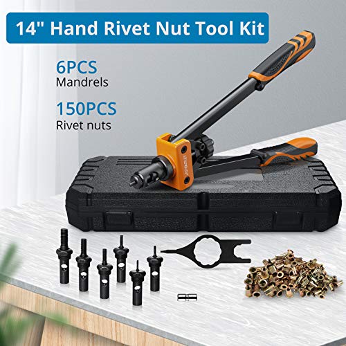 AUTOUTLET Set di pinze per Dadi per Rivetti Rivettatrice Professionali da 14 "con Mandrini in Acciaio M3 M4 M5 M6 M8 M10, 150pz Dadi per Rivetti con Impugnatura Antiscivolo (Arancione)
