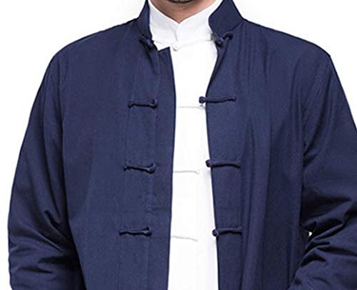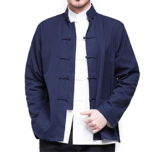 Autunno Nuovi Uomini Stile Cinese Cotone e Lino Giacca Sciolto Kimono Cardigan Uomo Tinta Unita Giacca di Lino blu navy XXXXL