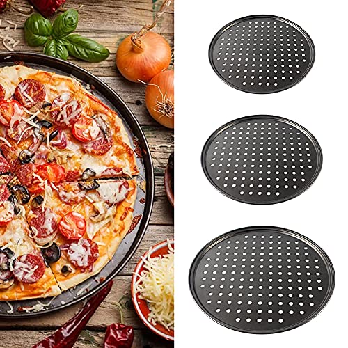 AUTUUCKEE 3 pz Strumento Antiaderente Pizza Vassoio In Acciaio Al Carbonio Teglia Forata Mesh Profonda