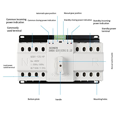 [Dual Power Transfer Switch] L'interruttore di trasferimento automatico ha le funzioni di protezione da cortocircuito, protezione da sovraccarico, protezione da bassa tensione, protezione antincendio, doppia uscita e segnale di chiusura.