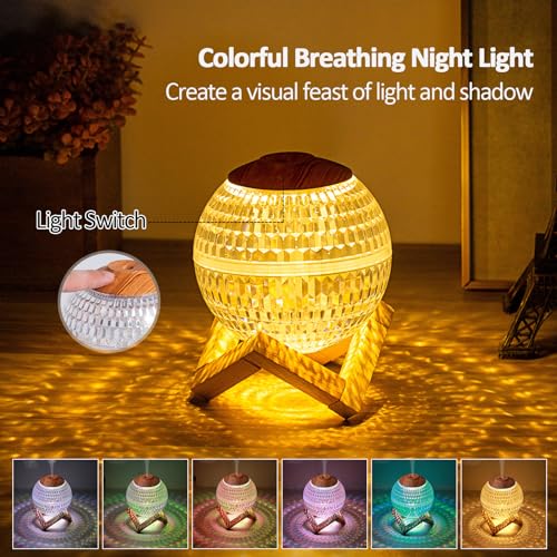 Auveach Umidificatore Portatile Sfera di Cristallo Multi colori di Luce LED Notturna 3 Modalità < 36dB Silenzioso 350ML per Camera da Letto Ufficio