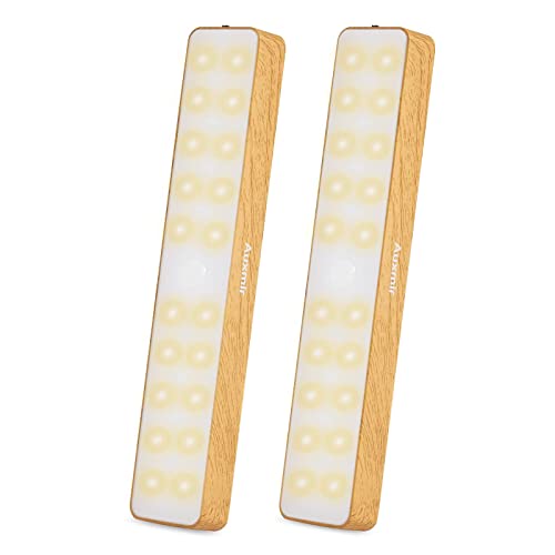 Auxmir Luce LED Sensore Movimento, Luce Armadio Ricaricabile senza Fili, Barra Luminosa con Striscia Magnetica, 3 Modalità di Illuminazione per Armadio Guardaroba Cucina Corridoio, 2 PZ