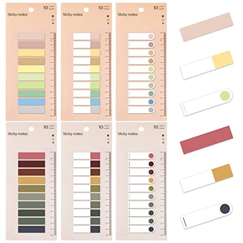 [La Confezione Include]: Totale di 1200 pezzi di Segnapagina Etichette, 6 set di 1200 pagine o 1 set di 200 pagine, in una varietà di colori Morandi, che facilitano la ricerca dei contenuti.