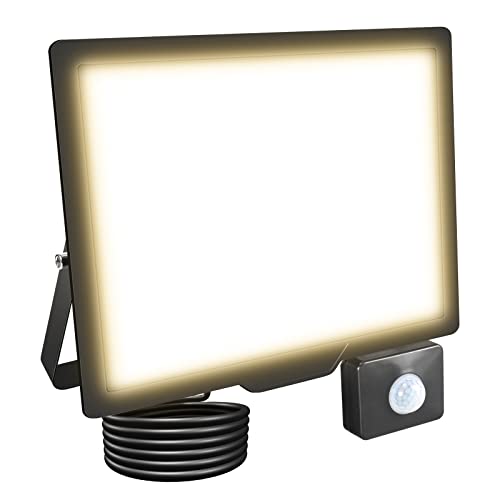 AUXTINGS 75W Luci di alluvione a LED Sensore di movimento Luci di sicurezza all'aperto esterno Lampada Illuminazione bianco caldo 4000k per il parcheggio del cortile della casa stadio, IP66 175V-260V