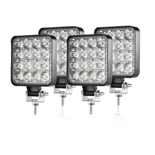 AUXTINGS 4 pezzi 10 cm 48W Faro da Lavoro Led Sottile Faretto Fari Led Fuoristrada Fendinebbia Barra Luci Led per Trattore Camion Off Road Auto Moto 4x4 4WD Barca,12V 24V IP66 Impermeabile 6000K