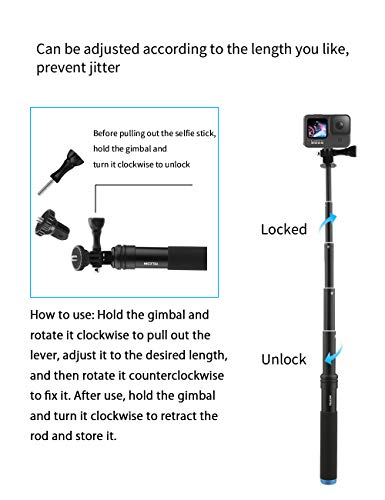 【Mini Tripod Design】: Mini Tripod consente l'utilizzo da tavolo o desktop o collegare il bastone selfie per estendere la lunghezza e collegare la fotocamera digitale, lo smartphone o la fotocamera digitale GoPro.