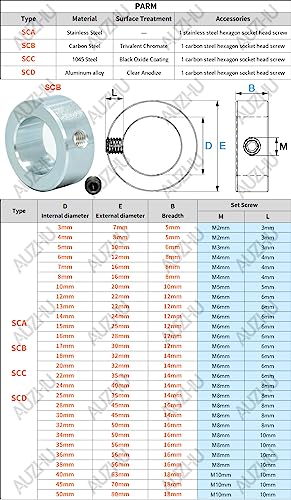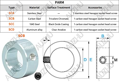 AUZHU - SCB - Metrico- Anelli di bloccaggio acciaio Collari con vite di bloccaggio Collari per albero Anello di fissaggio Morsetto per gola Anelli di posizionamento Dimensioni: ID 20 mm - OD 32 mm