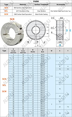 AUZHU - SCK - Metrico- Anelli di bloccaggio acciaio INOX Collari con vite di bloccaggio Collari per albero Anello di fissaggio Morsetto per gola Anelli di posizionamento Dimensioni: ID80 mm- OD108 mm