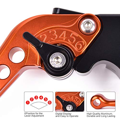 High Quatily: le leve della frizione del freno per moto sono realizzate in alluminio 6061-T6 e hanno una finitura anodizzata, antiossidanti, durevoli e facili da distribuire, qualità leggere e leggere. Le viti all'interno sono in lega non arrugginite come i tipi di ferro.