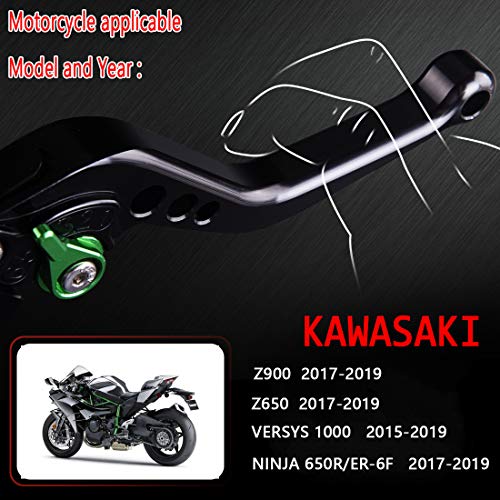 Auzkong Leve Freno Frizione Moto Corto Regolabile Set Leve per Kawasaki Z650/Z900 2017-2019, ninja 650R/ER-6F 2017-2019, VERSYS 650/1000/Vulcan 650S 2015-2019 Nero