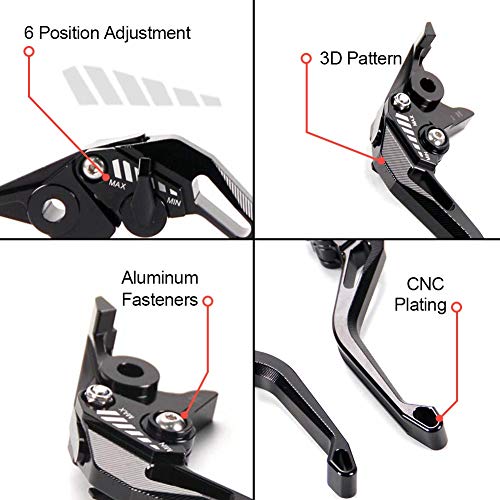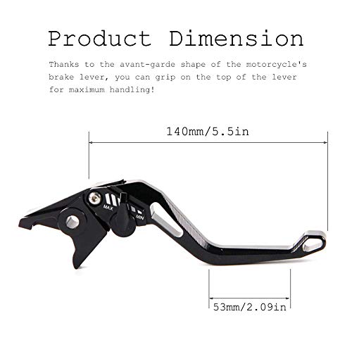 Alta qualità: le leve della frizione del freno moto sono realizzate in alluminio 6061-T6 e finitura tramite processo anodizzato, antiossidanti, gli strati di verniciatura sono due volte più spessi, i colori sono resistenti, duraturi e non facili da sbiadire. Le viti all'interno sono in lega di alluminio, non si arrugginiscono come i tipi di ferro.