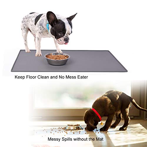 Auzkong Tappetino in Silicone per Animali Domestici, Impermeabile e Resistente allo Sporco, Tappetino Antiscivolo in Silicone, Tappetino per Cibo per Gatti, Cane(M, Grigio)
