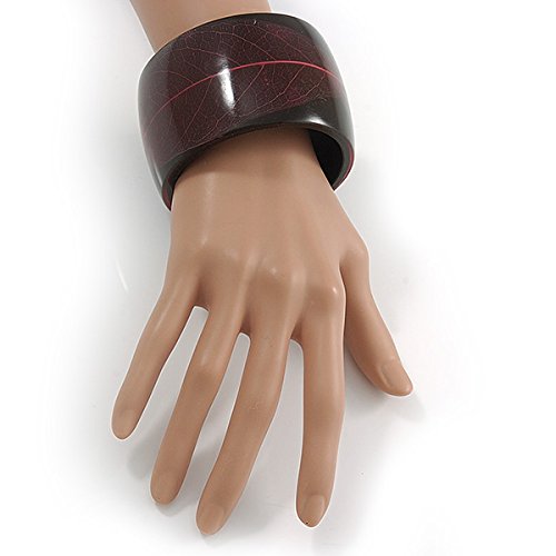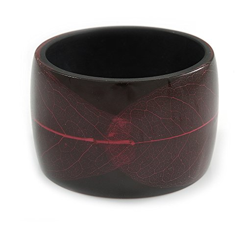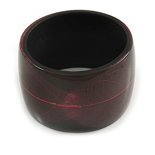 Avalaya - Bracciale rigido rigido in acrilico con motivo foglia (nero/rosa profondo), lunghezza 17 cm, misura M