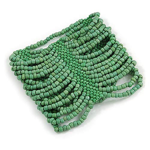 Avalaya - Braccialetto flessibile con perle di vetro verde mela, grande, fino a 22 cm