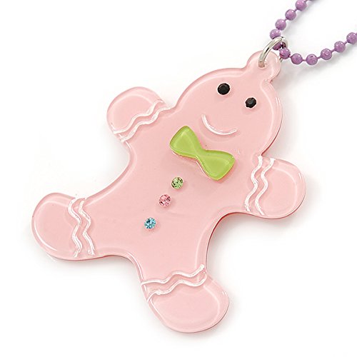 Avalaya Ciondolo in acrilico rosa chiaro con catena di perline lilla - 44 cm L, Misura unica, Plastica