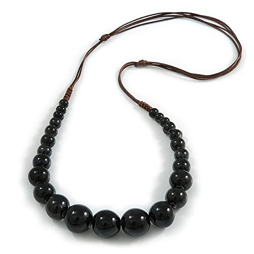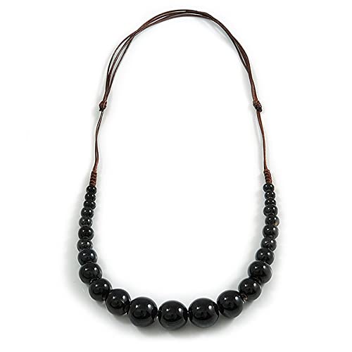 Avalaya Collana in ceramica nera 60-70cm L/regolabile dei cavi di seta marrone della perla, Misura unica, ceramica cavi